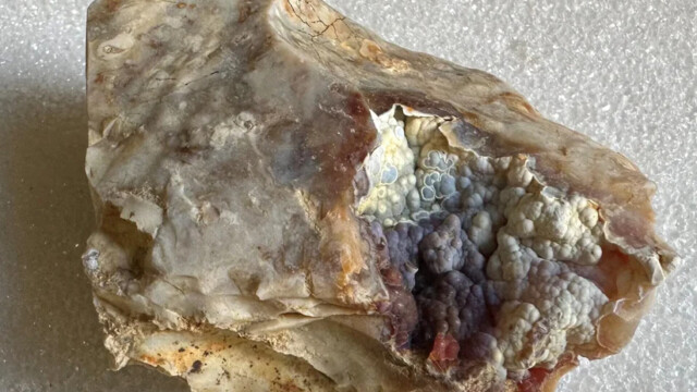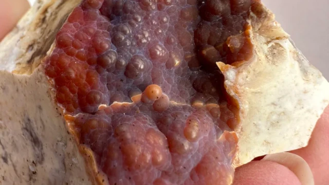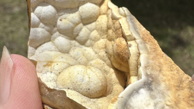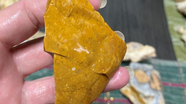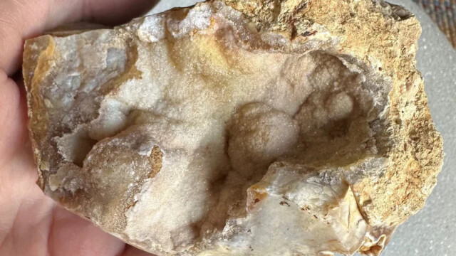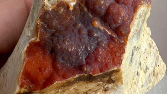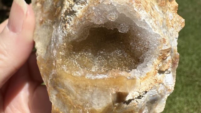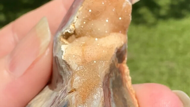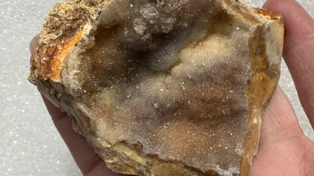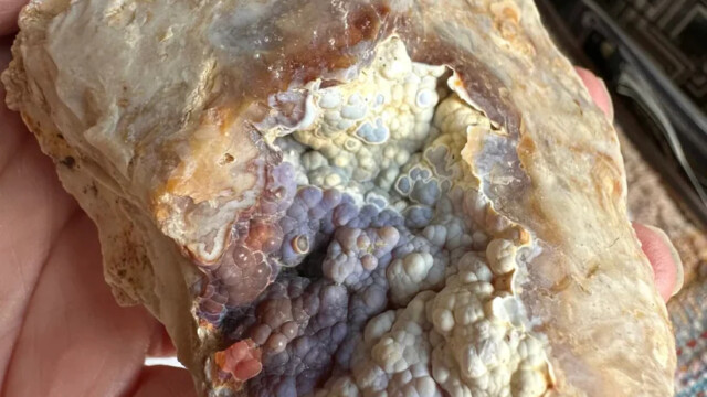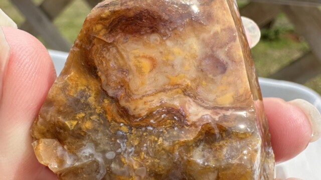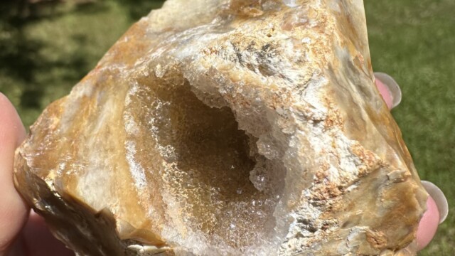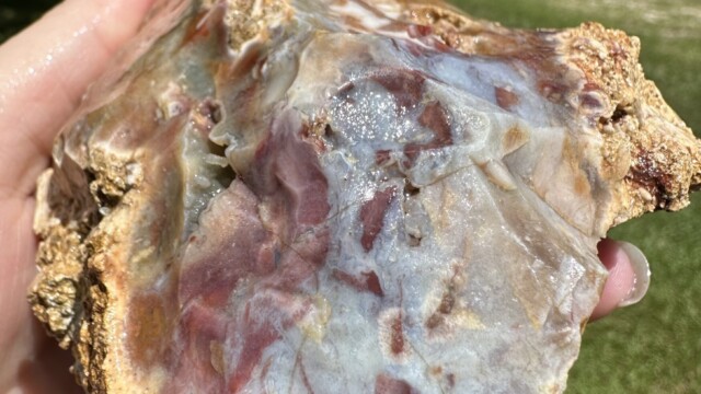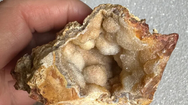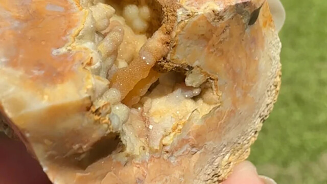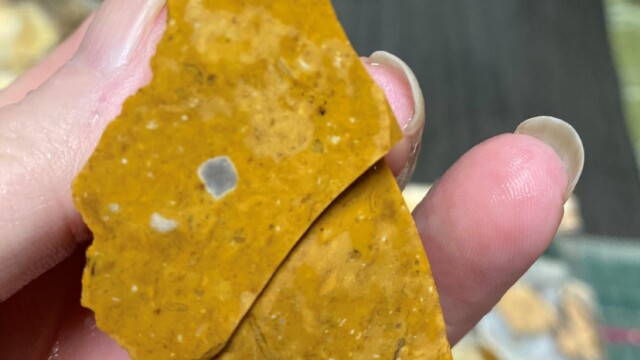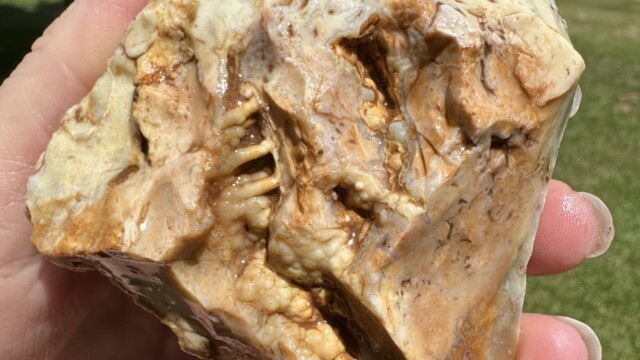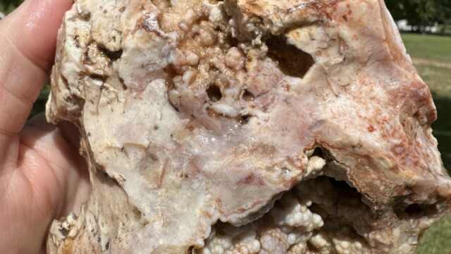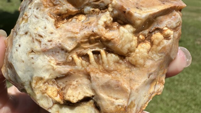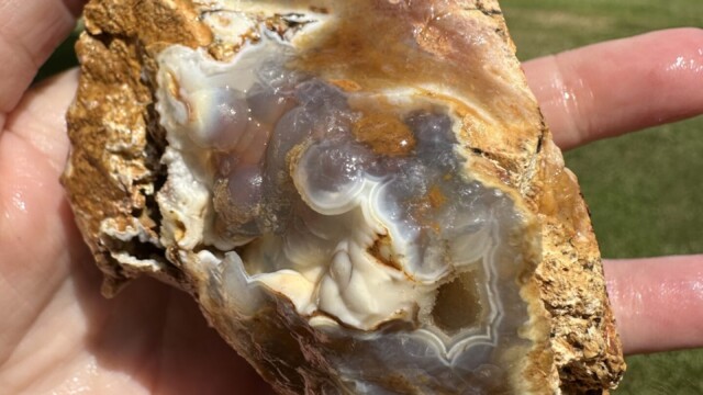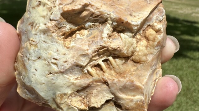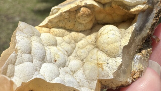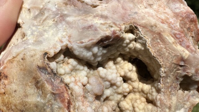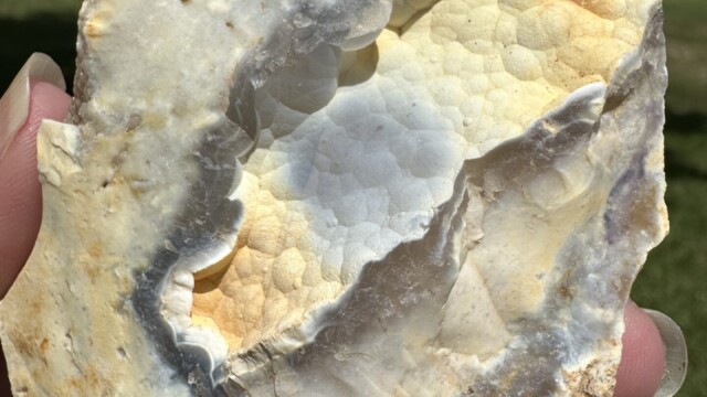 Savannah River Agate is a blend of minerals that formed in coral reefs, they are from 30-35 million year old Oligocene age deposits. You may find an assortments of treasures within, including fossils. The micro minerals are located in vugs of the agate/chert rock, Druzy Quartz, Gypsum, Hyalite Opal, Goethite, Limonite, Hematite, Green Wavellite, Strengite, Varascite, Cacoxenite, Kidwellite, Churchite, Rockbridgeite, Dufrenite, Jarosite. The fossils that can be found are Gastropods, Echinoids, Nummulites, Elems, Bryozoans, Barnacles, Diatoms and Tortilla.