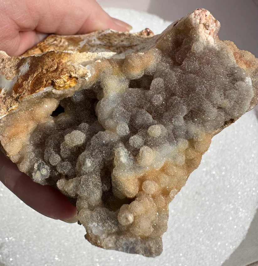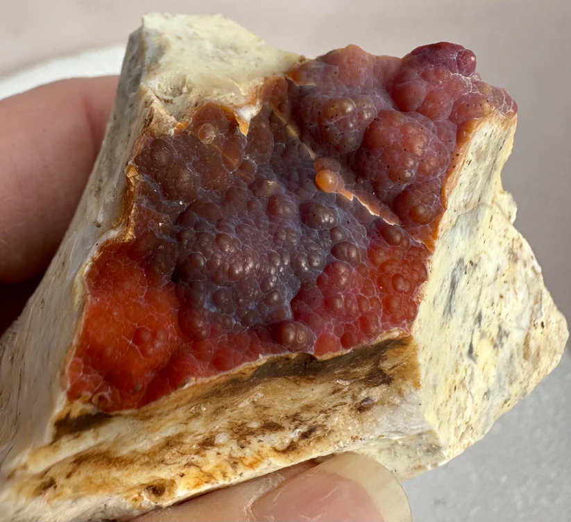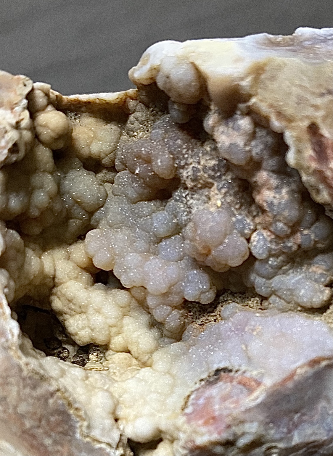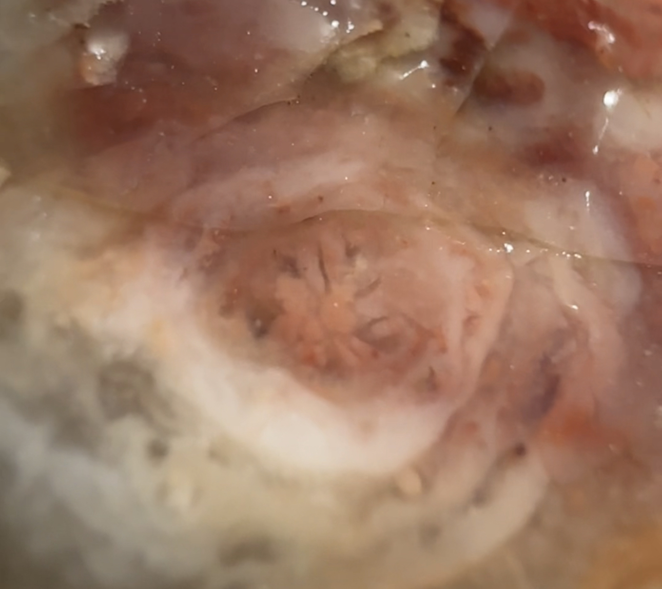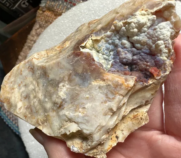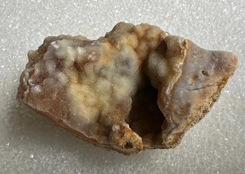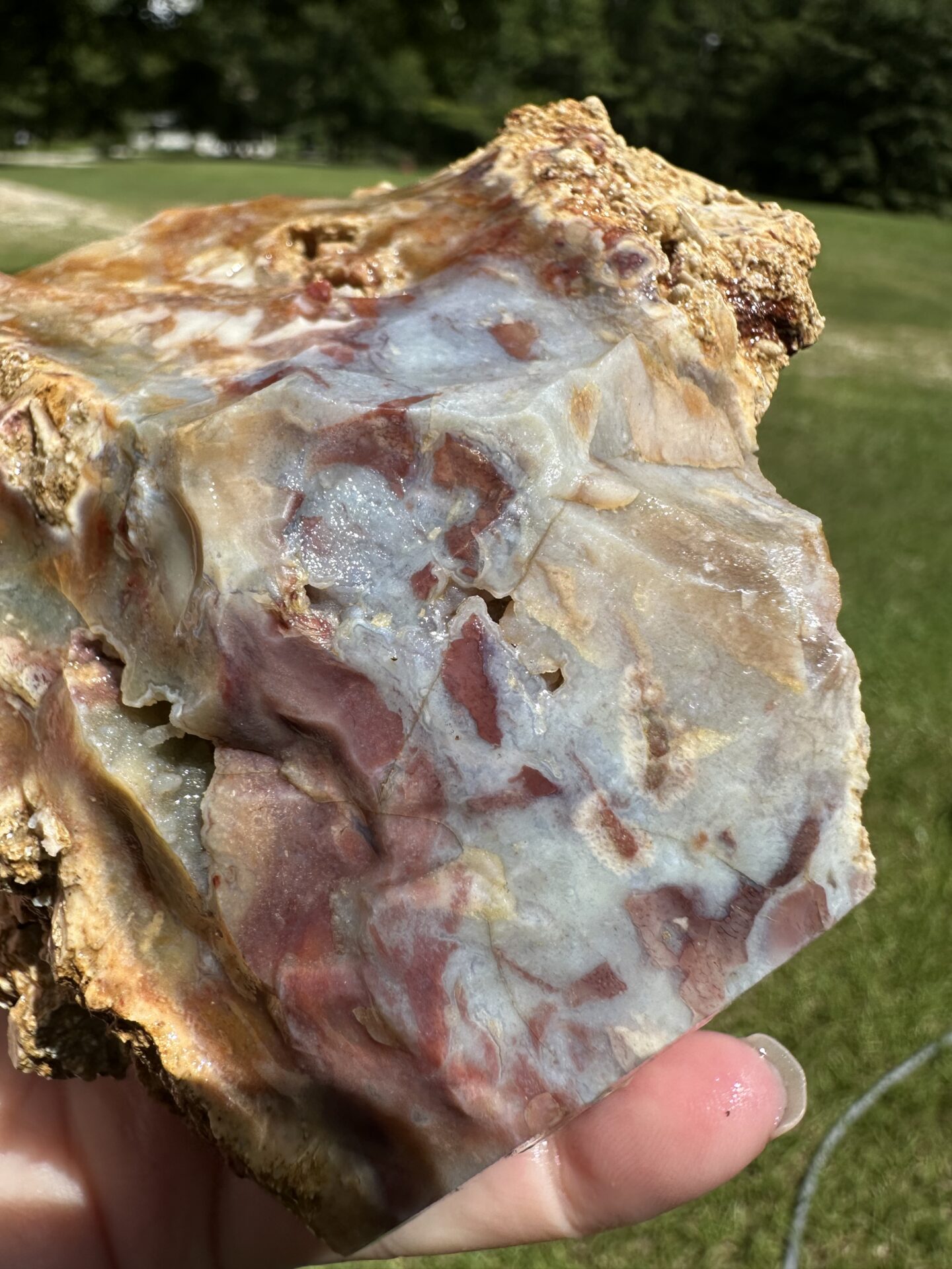 Savannah River Agate is a blend of minerals that formed in coral reefs, they are from 30-35 million year old Oligocene age deposits. You may find an assortments of treasures within, including fossils. The micro minerals are located in vugs of the agate/chert rock, Druzy Quartz, Gypsum, Hyalite Opal, Goethite, Limonite, Hematite, Green Wavellite, Strengite, Varascite, Cacoxenite, Kidwellite, Churchite, Rockbridgeite, Dufrenite, Jarosite. The fossils that can be found are Gastropods, Echinoids, Nummulites, Elems, Bryozoans, Barnacles, Diatoms and Tortilla.